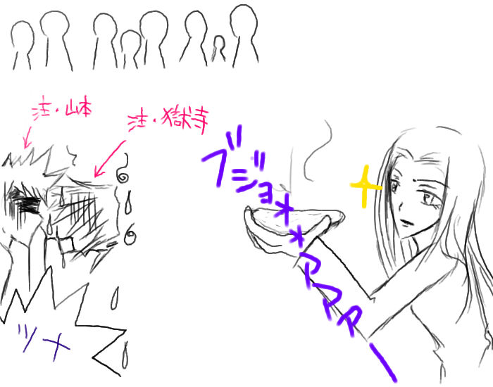 そして、天然な山本はツナにもらった弁当をあげようとします。ん?今、ごっくんの目の色が変わりましたけど・・・・はっ!?(レーダーかよ。)